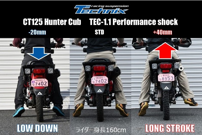 Honda CT125 ハンターカブ の前後サスペンションを Technixに交換するとどうなるのか?